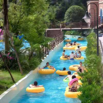 Normalement, la rivière paresseuse standard est de 3 à 4 m de large et de 0,9 à 1,2 m de profondeur, équipée d'un système de formage des vagues ou d'un système de formage des vagues artificielles.